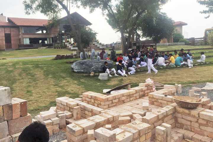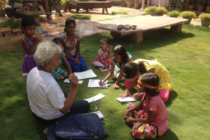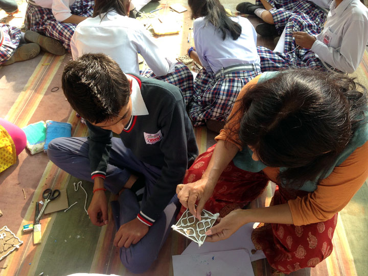 Children of Satya Niketan Higher Secondary School in Nagod working on an art project with Art Ichol